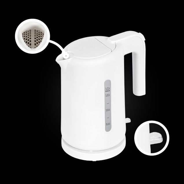 Nowoczesny design, ergonomiczna rączka oraz przejrzysty wskaźnik poziomu wody czynią model LCK171 wyjątkowo praktycznym i estetycznym elementem kuchennego wyposażenia. Wyjmowane sitko antyosadowe oraz szeroki otwór wlewu znacząco ułatwiają utrzymanie czajnika w czystości.